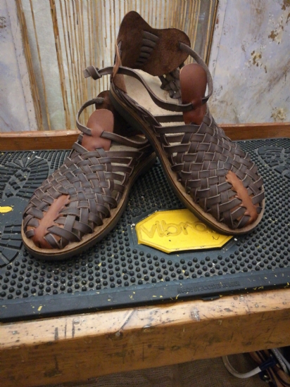 Creazione di sandalo intrecciato su misura realizzato a mano con vera pelle, vero cuoio e suole in gomma Vibram!...personalizzabili con scelta di svariati colori.